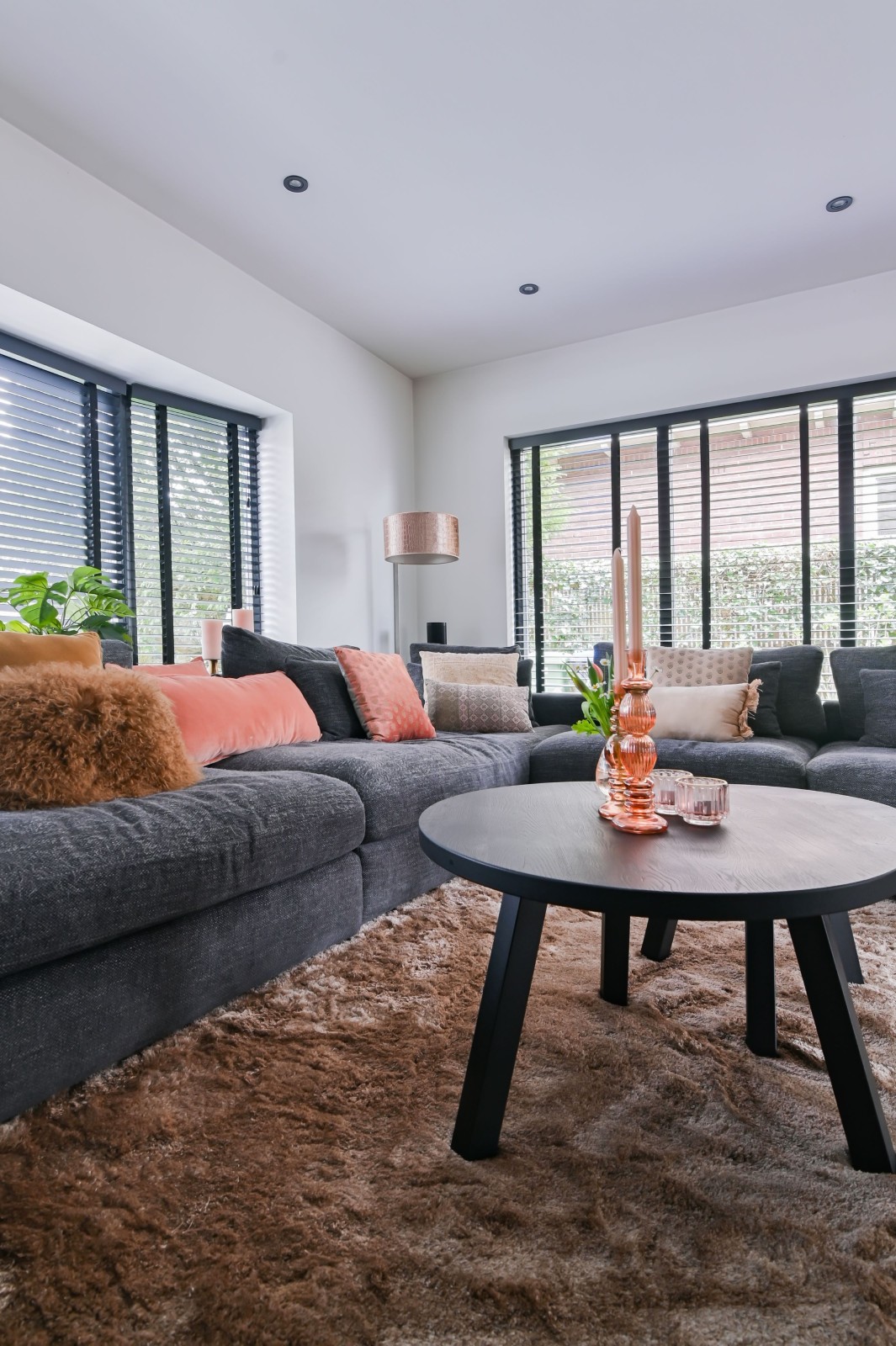 Omdat wij al deze verschillende meubelstukken allemaal kunnen leveren in 1 van onze 1.000 verschillende stoffen en kleuren kunt u het eindresultaat helemaal op elkaar afstemmen om de perfect eenheid en balans te vinden. Vervolgens is de woning volledig afgestyled door onze interieurstyliste aan huis. Bekijk hieronder het resultaat van dit geweldige project.